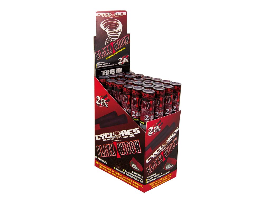 Cyclones® Black Widow jsou kvalitní celulózové blunty určené pro ty, kteří chtějí maximální chuť a komfort bez tabáku. Jsou předtočené, takže stačí pouze naplnit, lehce upěchovat a užít si rovnoměrné a pomalé hoření.