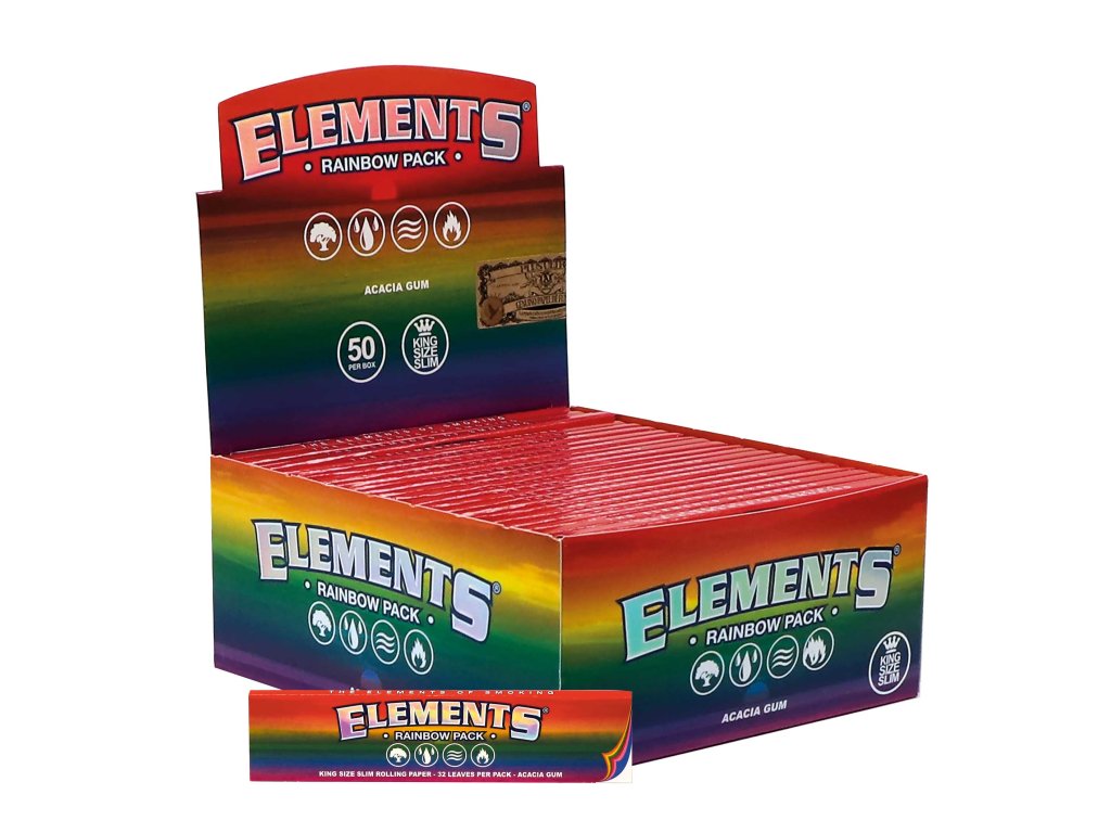 Papírky Elements® Rainbow King Size Slim 32 ks