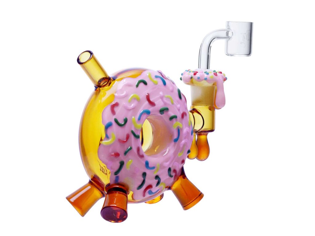 Black Leaf® DONUT je mini dab rig, který spojuje hravý design a vysokou kvalitu zpracování. Tento roztomilý „donut“ z borosilikátového skla není jen vizuálně působivý, ale i plně funkční — díky 3-dírovému difuzoru dokonale ochlazuje a filtruje kouř, což zajišťuje jemný a chutný hit.