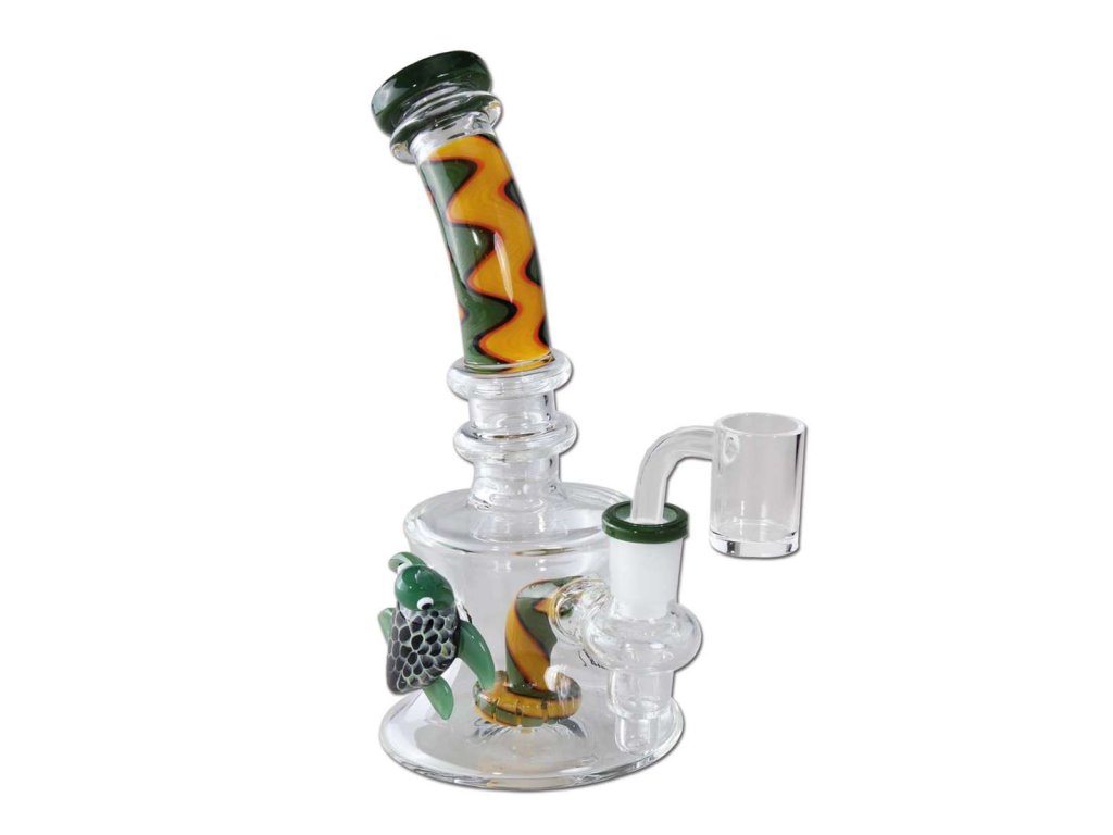 S dab rigem Black Leaf® ŽELVA proměníte každý dab session v zážitek! Tento krásně zpracovaný bong z borosilikátového skla zaujme hravým motivem želvy, která jako by šplhala po trubici vzhůru za vůní výtažků. Kromě vizuální originality nabízí i vynikající funkčnost díky shower head perkolátoru, který rozptyluje kouř do jemných bublinek, čímž zajišťuje hladký, chladný a chuťově čistý kouř.