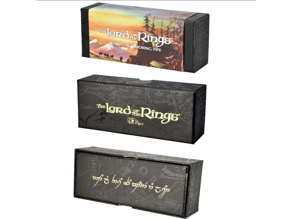 Design: Na hlavě dýmky je vyryta rytina kulatých dveří hobití nory, symbolizující začátek každého dobrodružství