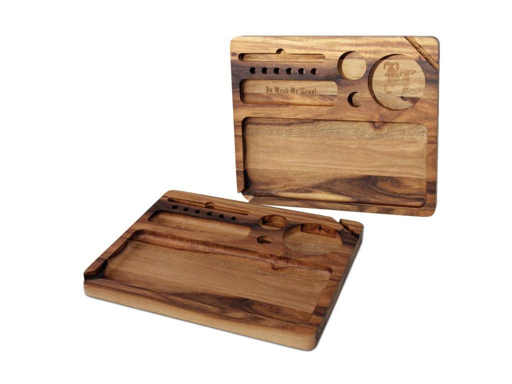 Stylový dřevěný podklad vypadá jako elegantní šperkovnice, skvěle doplní každou domácí sesh zónu a zároveň je natolik kompaktní, že poslouží i na cestách.