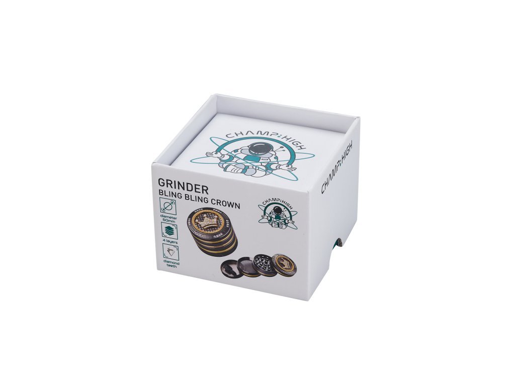 Kovová drtička Champ High® Crown je ideální volbou pro ty, kteří chtějí spojit precizní funkčnost s výrazným luxusním vzhledem. Čtyřdílná konstrukce z kvalitního kovu zajišťuje hladké, rovnoměrné drcení a dlouhou životnost i při pravidelném používání.
