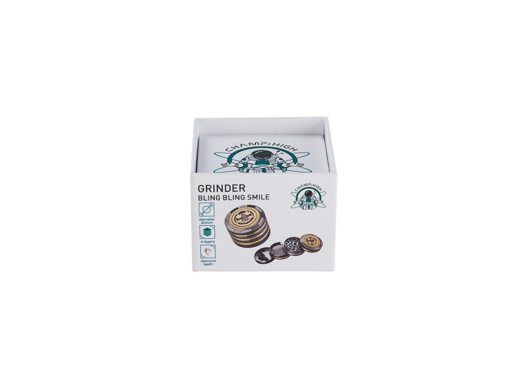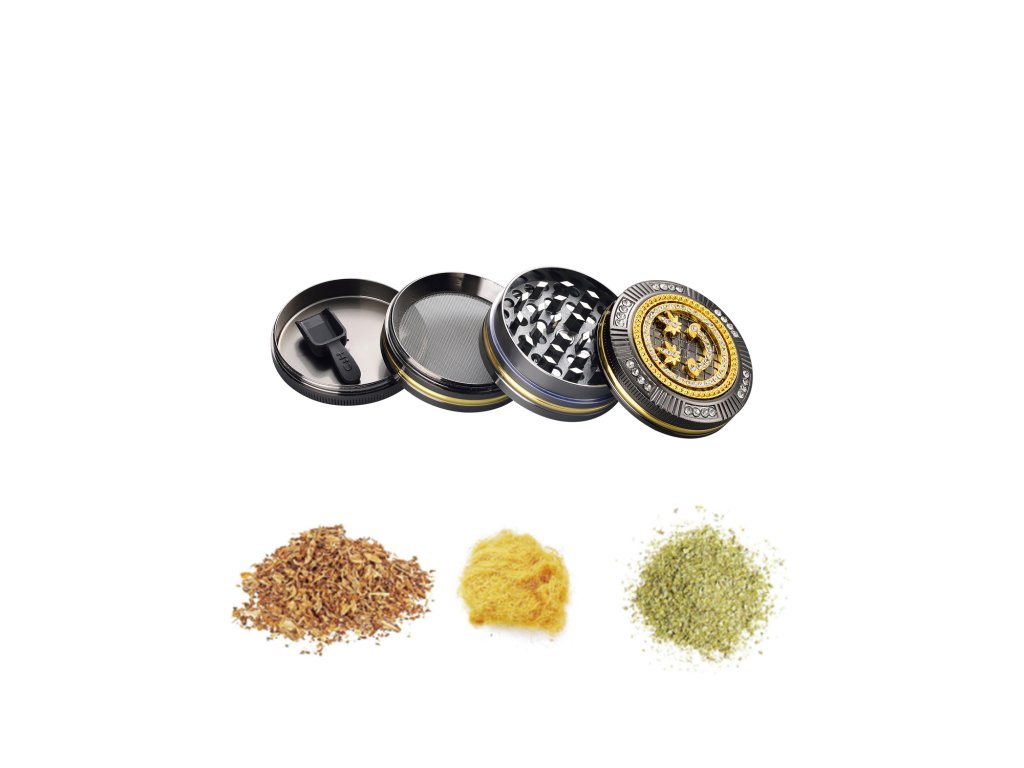 Kovová drtička Champ High® Face je ideální volbou pro každého, kdo chce spojit funkčnost, kvalitu a výrazný design. Čtyřdílná konstrukce umožňuje nejen efektivní drcení sušiny, ale také oddělení jemného pylu do spodní komory.