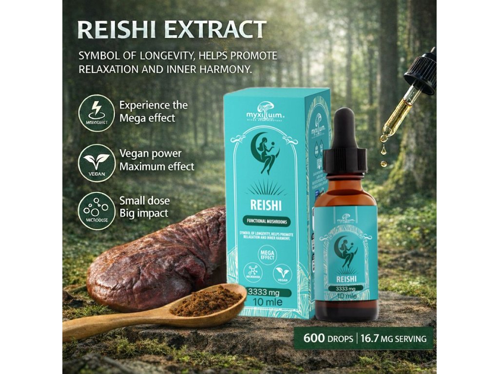 Extrakt z houby Reishi 10 ml je koncentrovaný tekutý doplněk stravy získaný z houby Ganoderma lucidum, která je tradičně ceněna v asijské kultuře. Reishi je známá jako „houba nesmrtelnosti“ a je dlouhodobě využívána v rámci tradičních přístupů ke zdravému životnímu stylu.