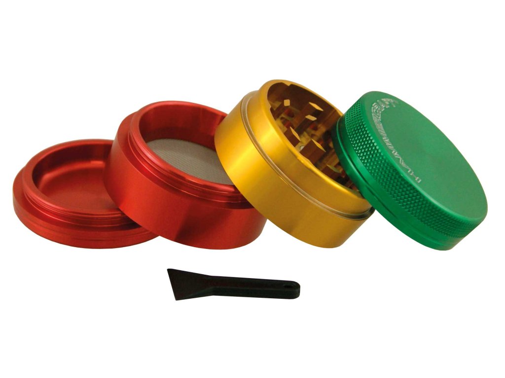 Drtička HAMMERCRAFT Rasta ø38 mm přináší kompaktní, ale výkonný nástroj pro všechny milovníky bylin. Vyrobena z odolného eloxovaného hliníku, kombinuje tradiční čtyřdílnou konstrukci s atraktivním Rasta designem. Ostré diamantově řezané zuby si poradí i s tvrdšími bylinami a jemné sítko oddělí pyl pro další využití. Magnetické víko zajišťuje snadnou manipulaci a bezpečné uzavření při drcení.