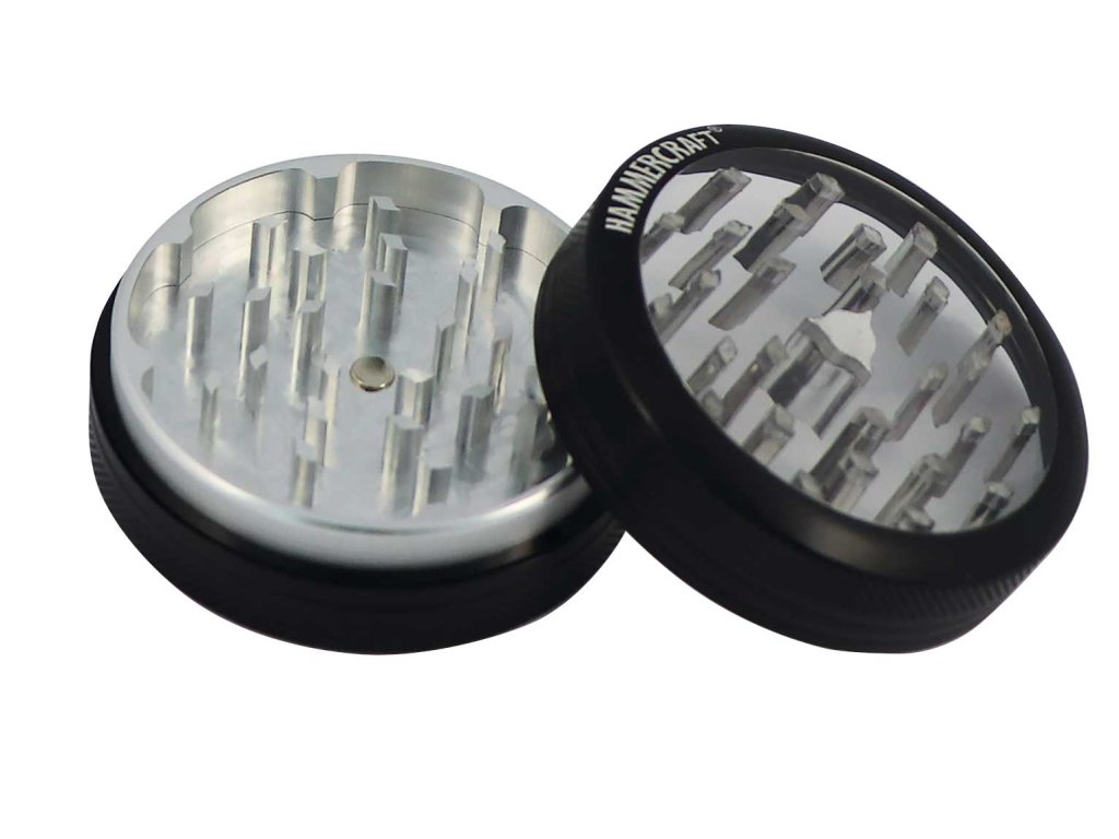 Drtička HAMMERCRAFT se skleněným víkem ø63 mm kombinuje odolnost eloxovaného hliníku a elegantní průhledný design, který vám umožní sledovat proces drcení. Dvoudílná konstrukce zajišťuje jednoduché použití a snadnou údržbu, zatímco ostré diamantově řezané zuby si poradí i s tvrdšími bylinkami.
