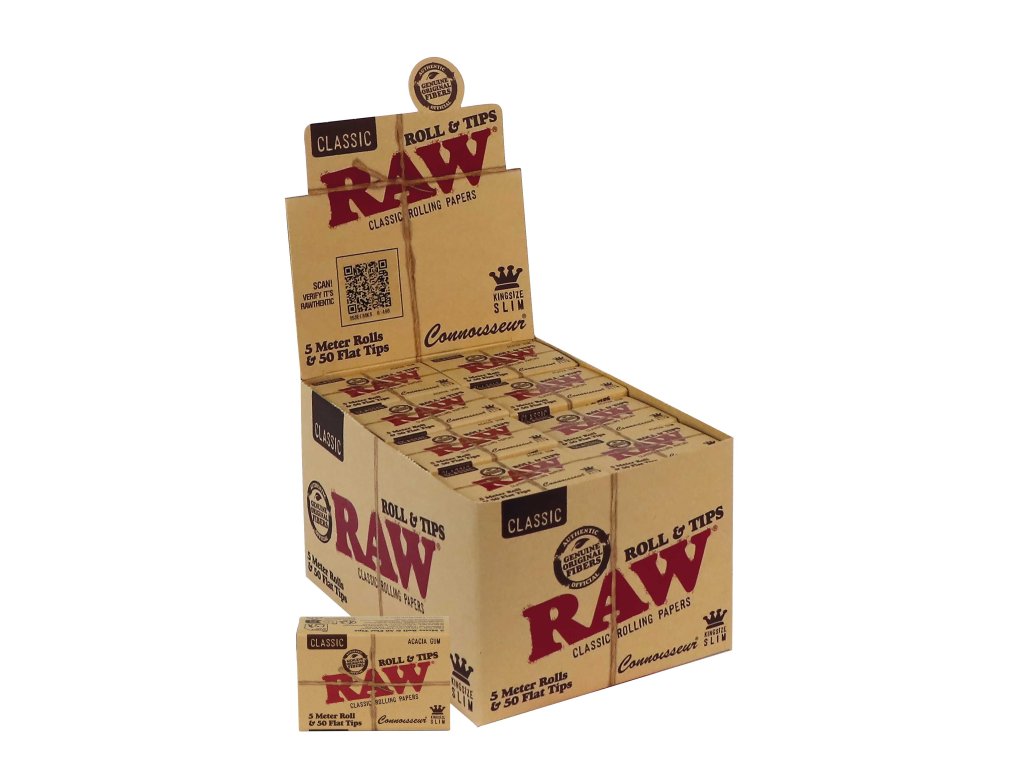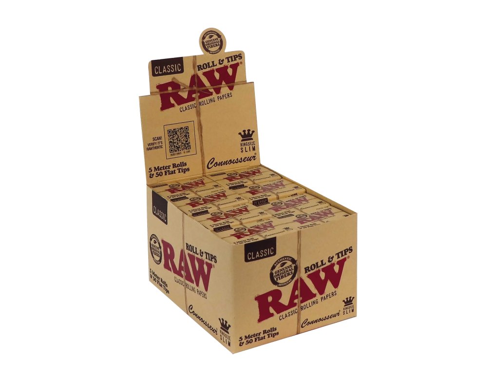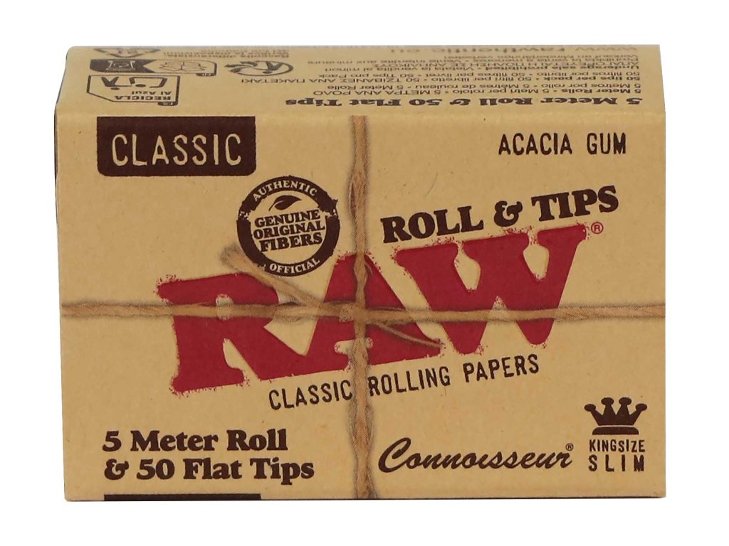 Rolovací papírky RAW® Rolls Connoisseur spojují to nejlepší ze světa kuřáckých potřeb – extra dlouhý 5metrový pás papíru a balení 50 perforovaných filtrů. Díky tomu máte naprostou volnost při tvorbě vlastních cigaret a jointů v délce přesně podle potřeby. Papírky RAW® jsou vyrobené z nebělených přírodních vláken s akáciovou gumou, takže hoří pomalu, rovnoměrně a nezanechávají nežádoucí pachuť.