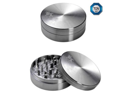 Kompaktní nerezová drtička Black Leaf® o průměru 59 mm v 2dílném provedení. Odolná, téměř nezničitelná, s diamantovými zuby, magnetickým víkem a sametovým pytlíkem.