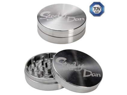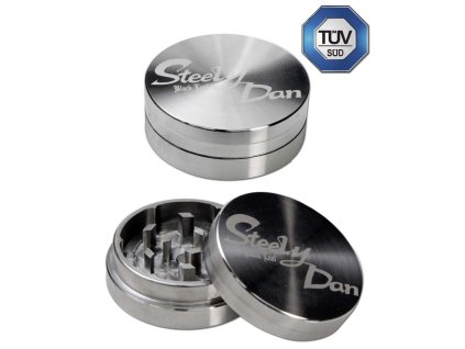Prémiová nerezová drtička Black Leaf® Steely Dan s průměrem 59 mm. Dvoudílná konstrukce z nerezové oceli, diamantově řezané zuby a doživotní záruka.